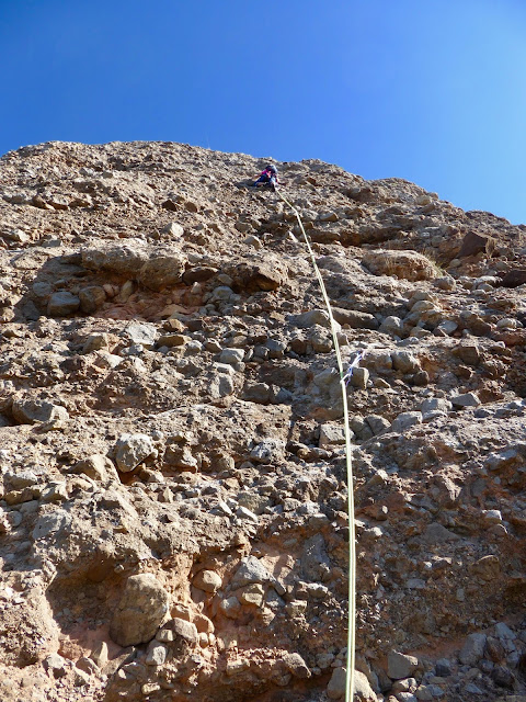 Aquest com venim de Peña Rueba on ahir vàrem fer l'Espolón de Poniente, i donat que avui volem tornar aviat a casa, hem decidit anar fer una via més curta al Mallo Colorado.
