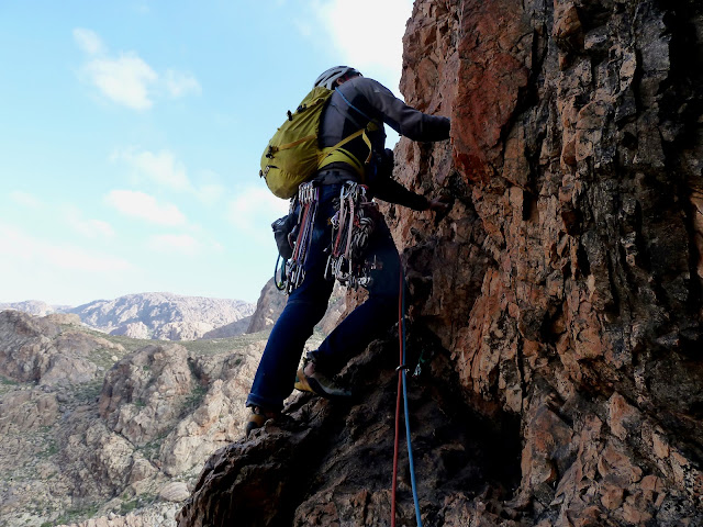 Les vistes sobre el desert i les llums de la tarda, no tenen preu. Per un moment observo l'entorn, tanco els ulls i ho intento memoritzar per veure si em durarà molt temps. Per sort tenim aquesta foto que de tant en tant ens hi farà pensar. Un dia que haurem fet dues escalades, totes dues molt fermes.