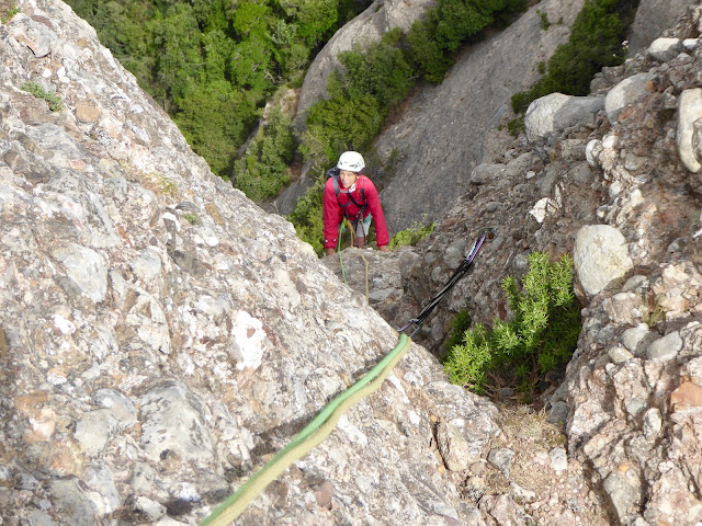 Avui hem quedat amb el Ramir per anar a La Peluda, però, tot i que hem marxat d'hora, a peu de via ens trobem amb el Ramon que va a la mateixa via en solitari. Al final acordem que en Ramir anirà amb el Ramon al davant nostre.